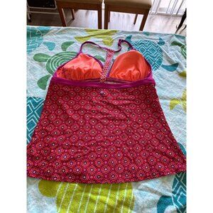 prAna Halter Tankini Top Multicolor Geometric Print Adjustable Straps Large