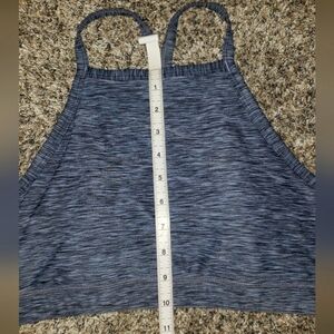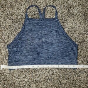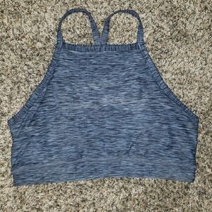 Experience comfort and style with the Prana Blue Sports Bra, designed for both athletic activities and relaxation. This high-neck, halter-style sports bra features a heathered blue color and is crafted from a stretchy, moisture-wicking fabric, ensuring a snug fit and breathability. Ideal for both workouts and lounging, it offers a chic and functional addition to your intimates collection.