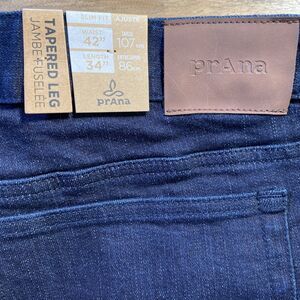 prAna Hillgard Jean Dark Rinse Wash Men’s 42x34 Organic Cotton NWT $120