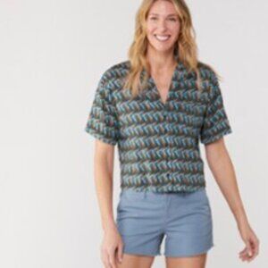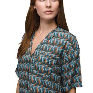 prAna Iguala Top – High Tide Retro Geo, Short Sleeve Button-Up (Women’s S, NWOT)