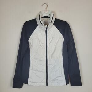 prAna Jacket Womens Large Black Cream Velocity Zip Hooded Windbreaker W2VELO316