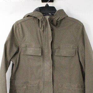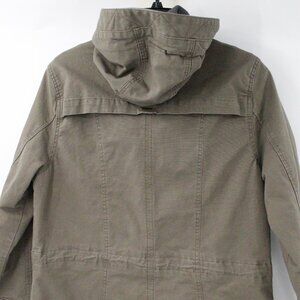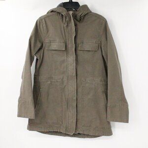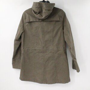 prAna Jacket Womens Small Hooded Green Cristos Parka Coat Organic Cotton Stretch