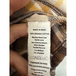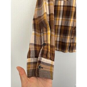 prAna Lybek Long Sleeve Flannel Shirt Jacket Brown Yellow Outdoors Men's Large