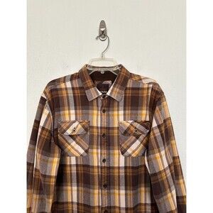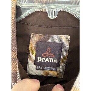 prAna Lybek Long Sleeve Flannel Shirt Jacket Brown Yellow Outdoors Men's Large.
