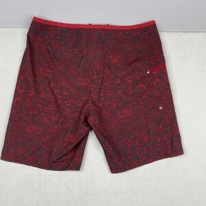 prAna Men's Crimson Cabana Catalyst Shorts Boardshort Red Gray Geometric Print33
