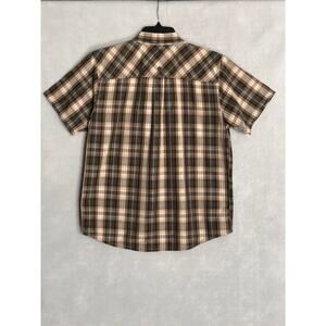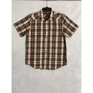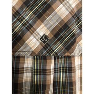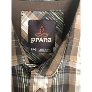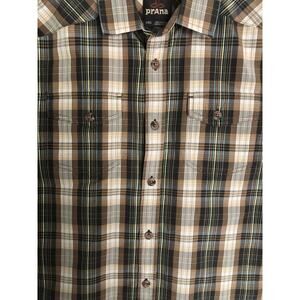 prAna Men's Large Short Sleeve Plaid Button-Up Shirt Brown