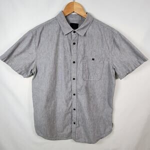 prAna Men's Medium gray Blue Button-Down Short Sleeve Shirt