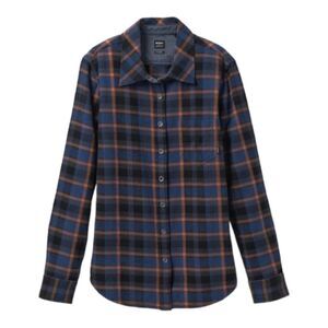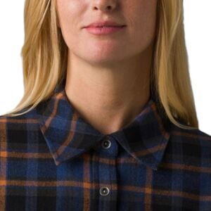 prAna Organic Flannel Shirt Rich Sapphire Blue Plaid Cozy Fall Layering Sz S NWT
