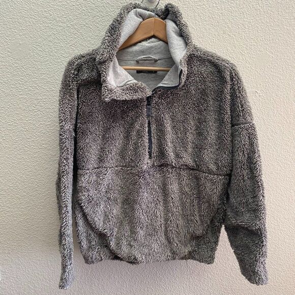 Women's prAna Gray Permafrost Half Zip Teddy Fleece Hoodie W23180516 Small Sherpa