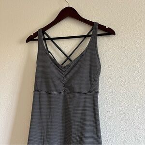 prAna Rebecca Strappy-Back Shelf Bra Athletic Dress in Black white Pinstripe