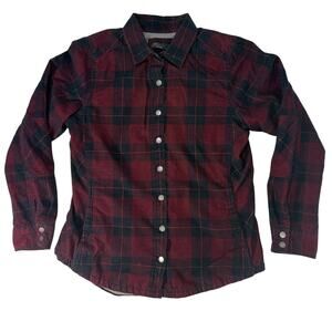prAna Red Black Plaid Flannel Lined Shirt Women’s M Snap Button Outdoor