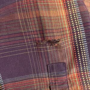 prAna Rennin Button Down Organic Cotton Dobby Stripe Chest Pockets Eggplant S