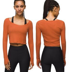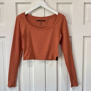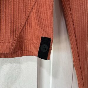 prAna Send Off Long Sleeve Ribbed Cropped Shirt Small Terracotta Thumbholes EUC