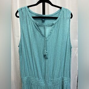 Open collar tank dress with elasticized drop waist
