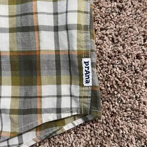 prAna Shirt Mens 2XL Green Orange Plaid Short Sleeve Button Up Casual Outdoors