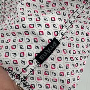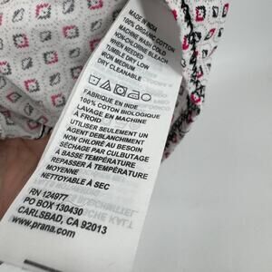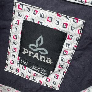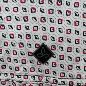prAna Shirt Mens Large Short Sleeve Button Up Organic Cotton Southwestern Print White Red Gray Black