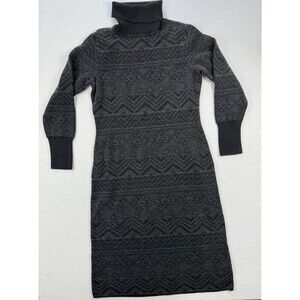 prAna South Rock Sweater Dress Charcoal Gray Intarsia Turtleneck Women’s Medium