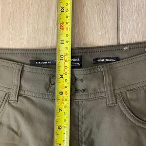 prAna straight fit performance pants in a size 8 Short. These are lightweight, durable, and made with 95% recycled nylon for quick-dry comfort and stretch—perfect for hiking, travel, and everyday outdoor wear. The olive/earth green color is super versatile and easy to style.