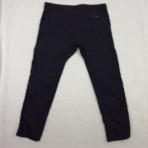 Prana Stretch Zion Pants Mens 35x32 Dark Gray Relaxed Nylon Adjustable Canvas. Good Preowned Condition. SIGNS OF WEAR - SEE PHOTOS WITH RED ARROW FOR FLAW PIN HOLE