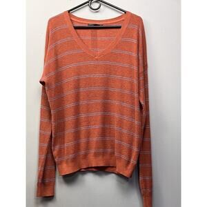 prAna Sweater Womens XL Striped Organic Cotton Waffle Knit V Neck Long Sleeve