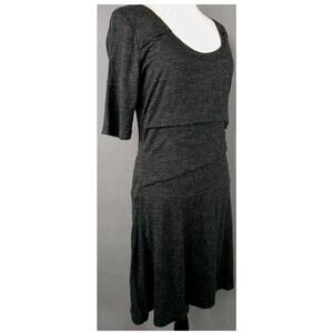 prAna Womens Knit Dress Charcoal Sz SM Lined 1/2 Sleeve Wool Blend Stretch Comfy