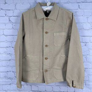 ~~The workwear-inspired jacket you'll wear everywhere. This button-front jacket is built with plenty of utility, from the interior and exterior chest pockets to the extra-deep hand patch pockets. Button front workwear inspired jacket, Corozo buttons on front and cuff, Exterior chest patch pocket, Interior chest patch pocket, Two hand patch pockets, Vented cuffs.