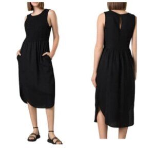 prAna Womens Seakissed Midi Everyday Dress SMALL in Black Cotton Dobby Jersey