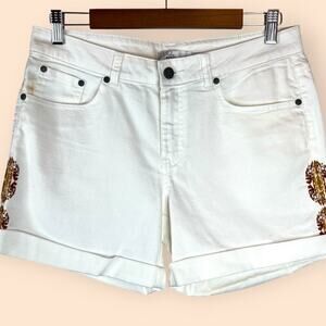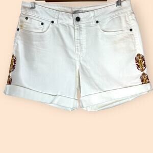 prAna the Kara Short Embroidered White Denim Shorts Women's Size 10