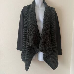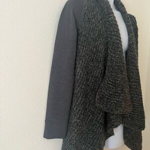 Fabric mix of sweater knit front panels with fleece sleeves and body
