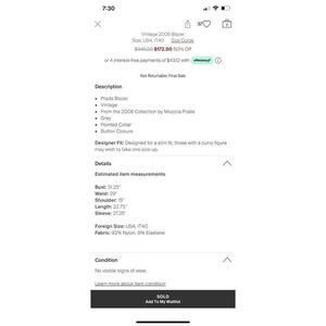 prada authentic Vintage Charcoal Gray Pin Striped Blazer Jacket IT 40 US 4 Small