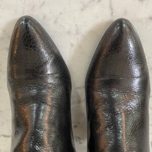 prada black patent ankle bootie. worn once. zip up side. 5" shaft. 2 - 2 1/2" heel.