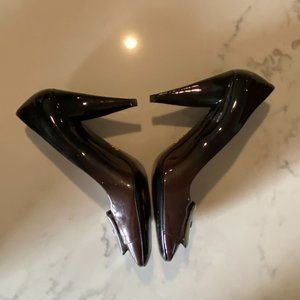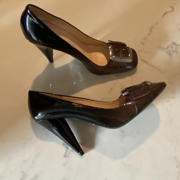 prada brown patent leather pumps w/ buckle - size 40 (gently used)
