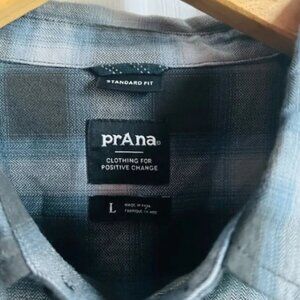 prana | blue gray los feliz organic cotton plaid flannel button down shirt