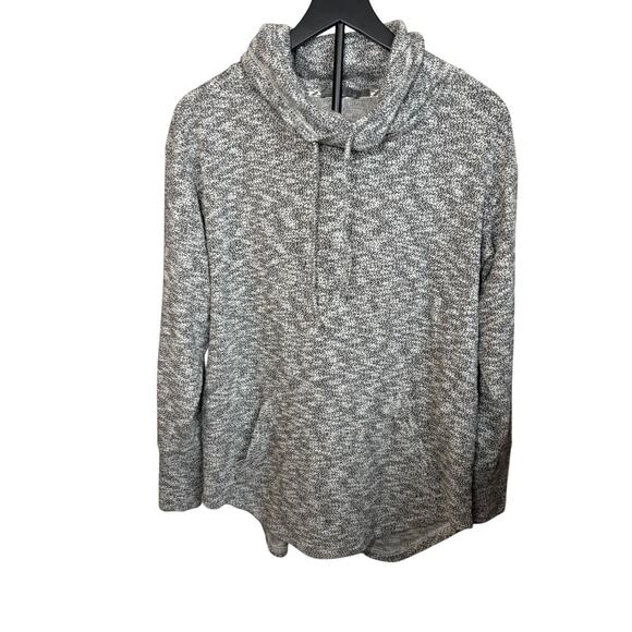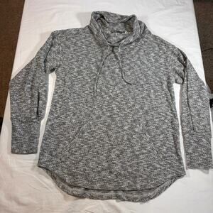 prana womens cowl neck black white heathered drawstring tunic length sweater. M