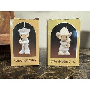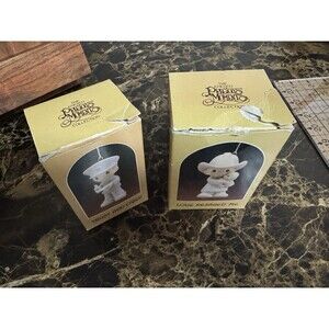 The product is a lot of 2 Christmas ornaments from the Precious Moments brand. These ornaments are part of a collection specifically designed for the holiday season, making them a perfect addition to any festive decor. With intricate details and timeless designs, these ornaments are sure to bring joy and warmth to your holiday celebrations for years to come.