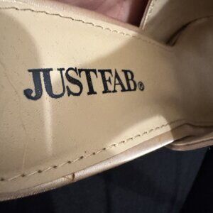 pretty rose goldish cream Just Fab heels. US size 7