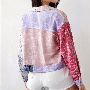 new with tags, size small, pink, purple, blue, white bandana print jacket