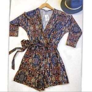 printed Pattern Surplice Romper