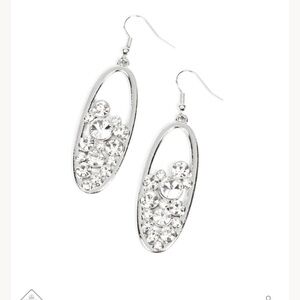 Effervescent stacks of brilliant white rhinestones bubble up inside a simple silver oval frame creating a prismatically stunning lure. Earring attaches to a standard fishhook fitting.