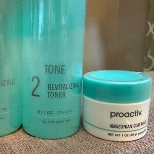 This listing is for two (2) 6 ounce sealed bottles of Proactiv toner. You'll also get a 1 ounce jar of Amazonian Clay Mask. All items are new and factory sealed. No expirations dates. These have been stored in a cool, dry place in a smoke-free home.