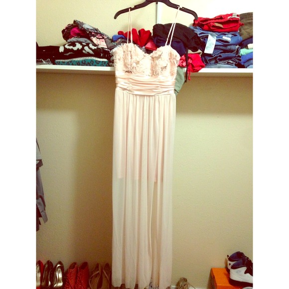 super cute brand new prom dress. Never worn. 100% brand new. pearl pinkish, super cute :)