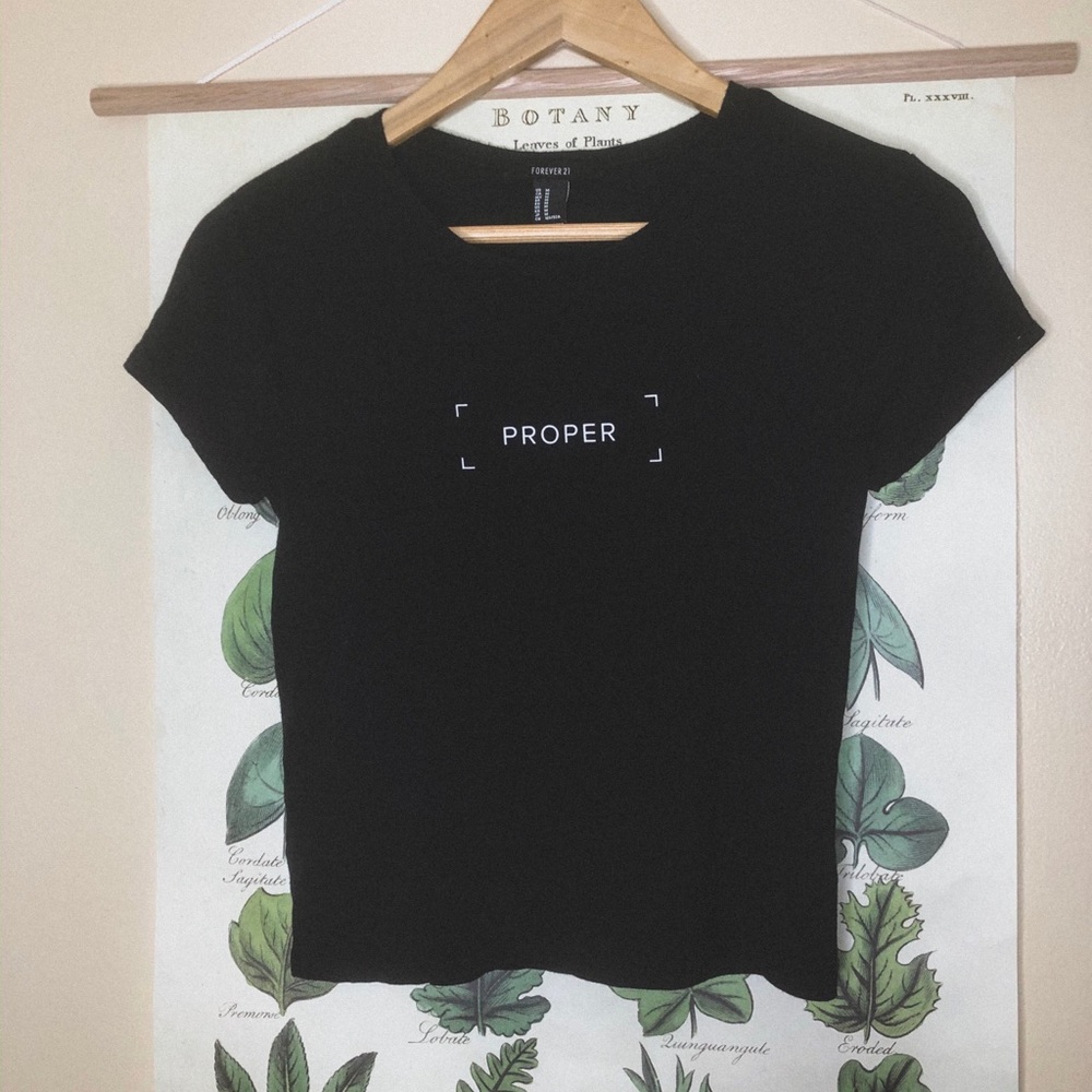 “proper” babydoll tee cropped super soft and stretchy material size medium (i’m a small and it fits perfectly)