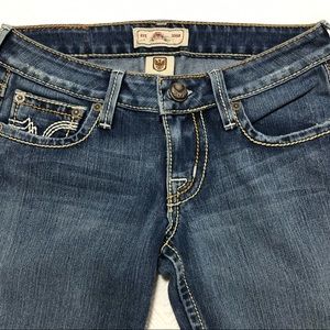 wash: medium. approximate measurements: 31" inseam 14" waist (laying flat) 6.5" front rise 11" back rise