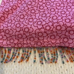 Floral pattern with a red & pink felt flower appliqué at the center And beautiful beads at the waist
