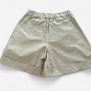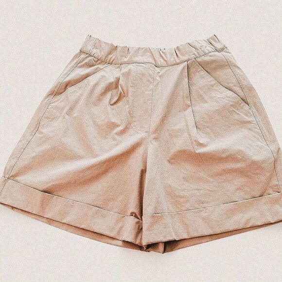 Pull on lounge casual shorts with preppy accents like front pleats and cuffed hem. Quick dry style fabric.