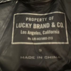hooded puffer coat pack and go. lucky brand in excellent condition. only worn a couple times. smoke and pet free home. the material feels like silk very soft! would be small enough to keep in a back pack or large purse. very nice!