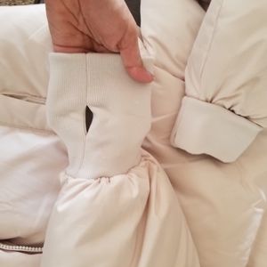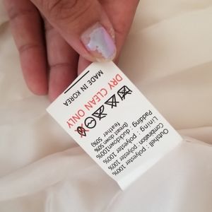 Used like new, wore once. I ordered online from Korea store and it made in Korea too, when I saw it says 'all size' I'd imagine it could be fit on me height 5'2, 120lb.. but it ended up too big for me looked like over size puffer jacket style. so I thought I would keep it and wear it for my trip to San Francisco and Lake Utah. After that trip It just stay in my closet cos winter in Hawaii never needed this kind of jacket. It has thumb holes when you unfold the sleeves when you need it