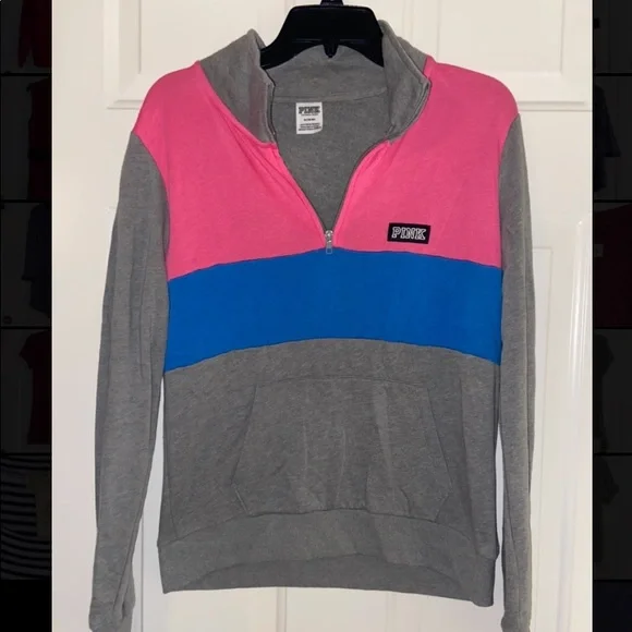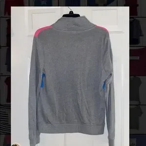 Gray pink and blue pull over pocket in front