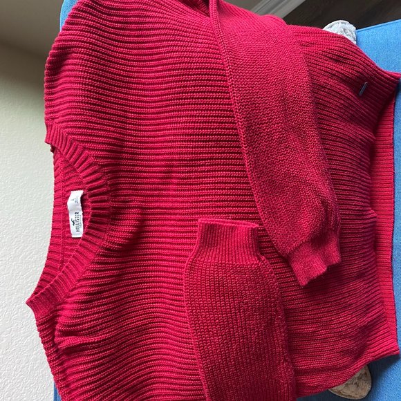 red - cropped pull over round neck long sleeve sweater size L