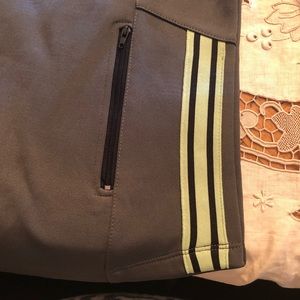 raglan long sleeve Soft Grey fleece inside, 1/4 zip, pouch pocket with zipper, shirttail hemline, novelty lime green taping, black binding on neckline and sleeve hem